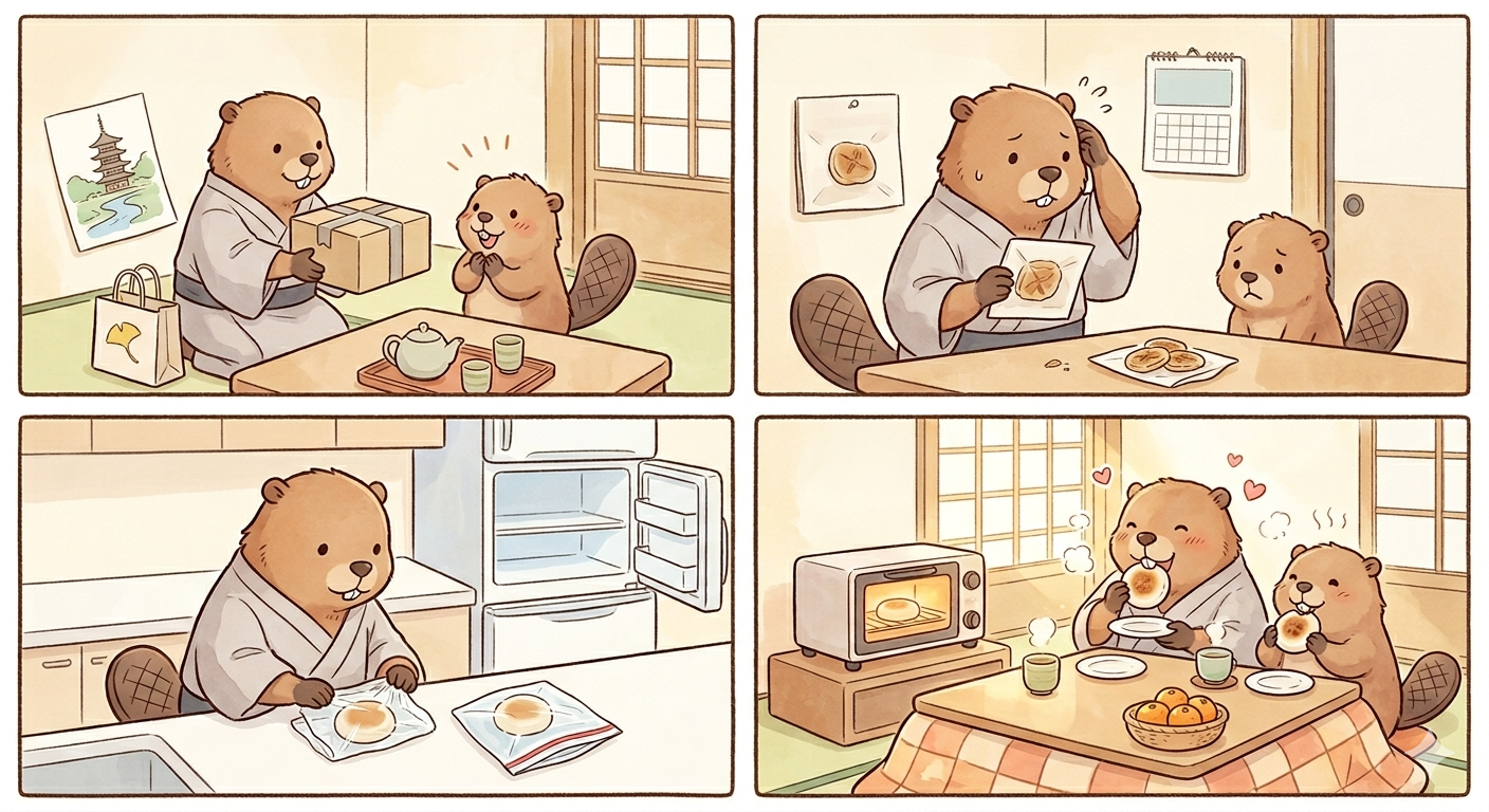 「一度解凍したけど、やっぱり明日食べよう」と再冷凍するのは、阿闍梨餅に対する裏切り行為です。一度溶けた水分が再び凍るとき、生地の組織を完全に破壊し、味も食感も、そして安心感も著しく損なわれます。解凍は「一期一会」。冷凍庫から出すのは、その時食べる分だけにしましょう。もし、うっかり多く出しすぎてしまったら、それは「阿闍梨餅パーティー」の合図だと思って、全部美味しく調理して食べきってしまいましょう!