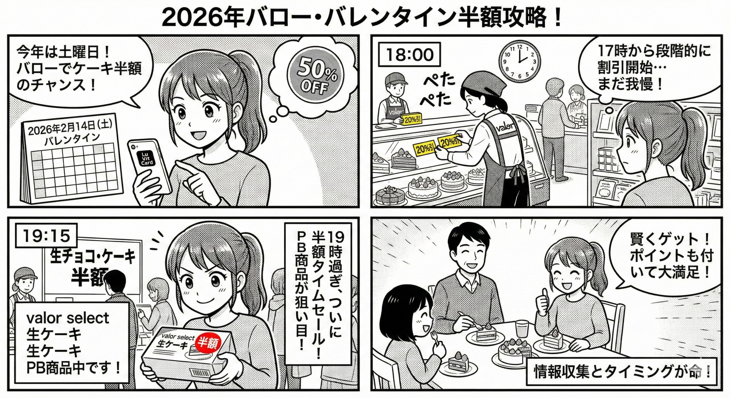 いかがでしたでしょうか。2026年のバレンタイン、バローでの「半額攻略」は、単なる運任せではなく、曜日、在庫管理、商品特性、そしてデジタルの活用といった様々な要素が複雑に絡み合っています。土曜日という特別な日に、美味しいケーキや生チョコを驚きの価格で手に入れることができれば、そのバレンタインはきっと忘れられない素敵な思い出になりますよね。