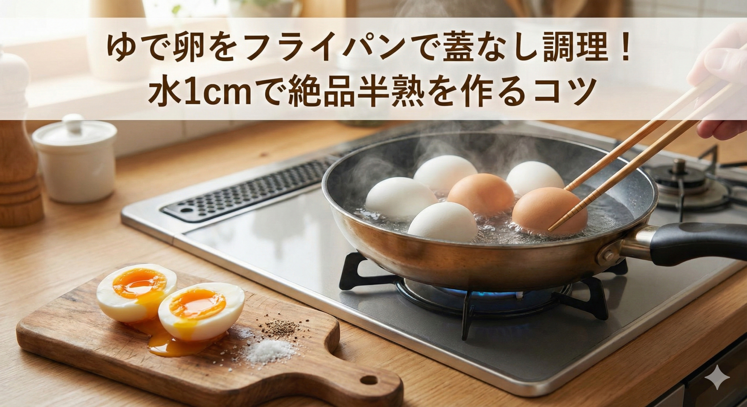 ゆで卵をフライパンで蓋なし調理!水1cmで絶品半熟を作るコツ