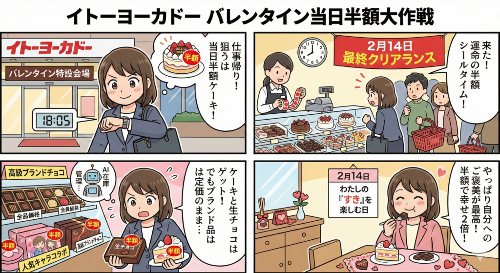 イトーヨーカドーのバレンタイン2026当日半額割引でケーキや生チョコは買えますか?