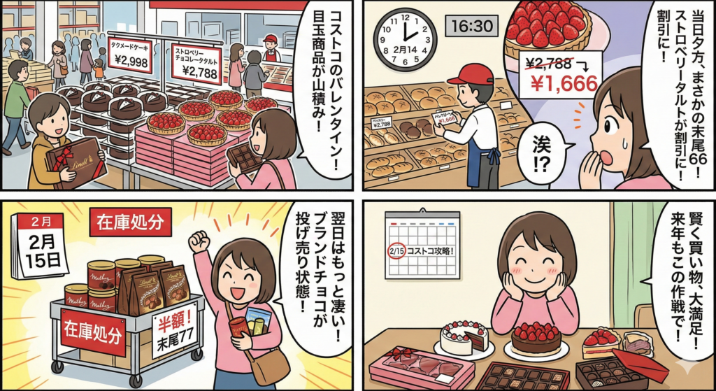 コストコバレンタイン2026のケーキや生チョコ当日半額や割引はありますか?