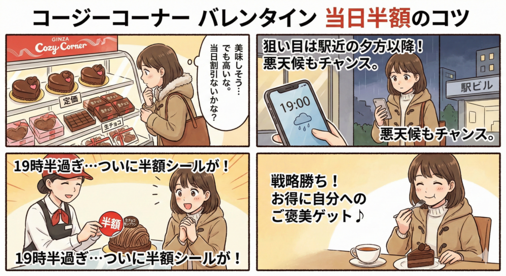コージーコーナーバレンタイン2026ケーキ生チョコ当日半額割引はありむすか?調べてみたら