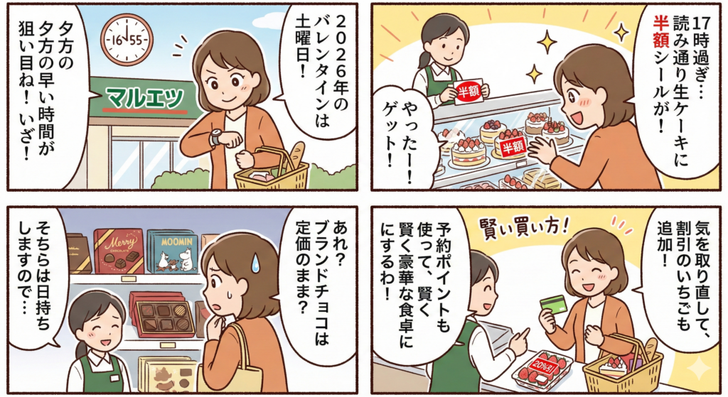セイコーマートのバレンタイン2026当日割引でケーキや生チョコを安く買う方法はありますか?