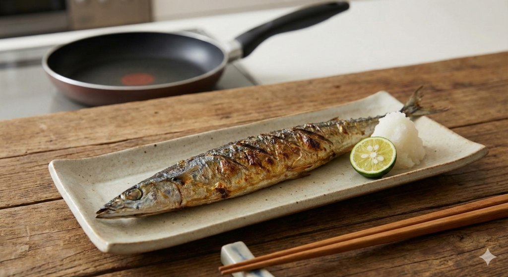 さんまをフライパンで切らないで焼く!臭わずパリパリにする方法