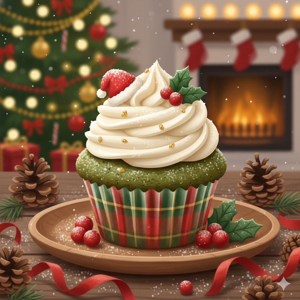 抹茶パウダーも使うことで、人工的な着色料を避けて、自然な緑色の「ツリー」マフィンが焼けます。クリスマスカラーにぴったりです。