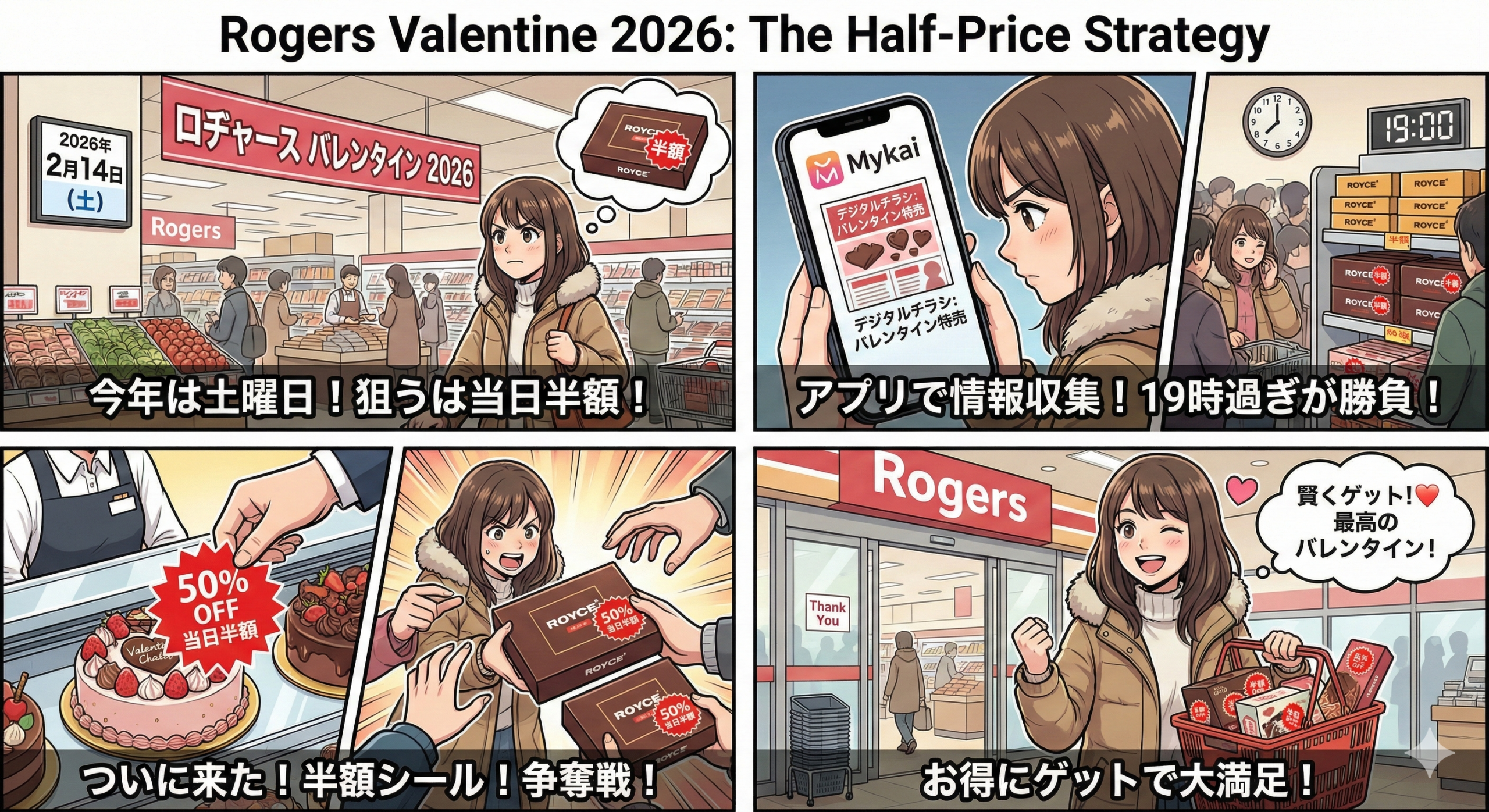 今回は、ロヂャースのバレンタイン2026において、ケーキや生チョコを当日半額の割引で賢く手に入れるための情報を、余すことなくお届けしました。ロイズの生チョコレートといった信頼のブランドから、2026年新作のキャラメルミルク、さらには当日限定の豪華なケーキまで、ロヂャースには私たちの期待を裏切らない「実利」が詰まっています。 当日の割引を狙うのは一種のエンターテインメントですが、最も大切なのは、そのお菓子を通じて自分や大切な人が笑顔になること。安く買えた喜びが、バレンタインの思い出をさらに素敵なものにしてくれるはずです。 最後になりますが、商品の在庫状況や割引の実施タイミングは、各店舗の判断により異なります。正確な情報は必ず公式サイトや店頭のチラシで確認し、最終的な判断はご自身の責任で行ってくださいね。2026年のバレンタインが、あなたにとって最高に甘く、お得な一日になりますように!私も当日は、浦和店か大宮店でシールを待つ一人として、皆さんと一緒に頑張りたいと思います。